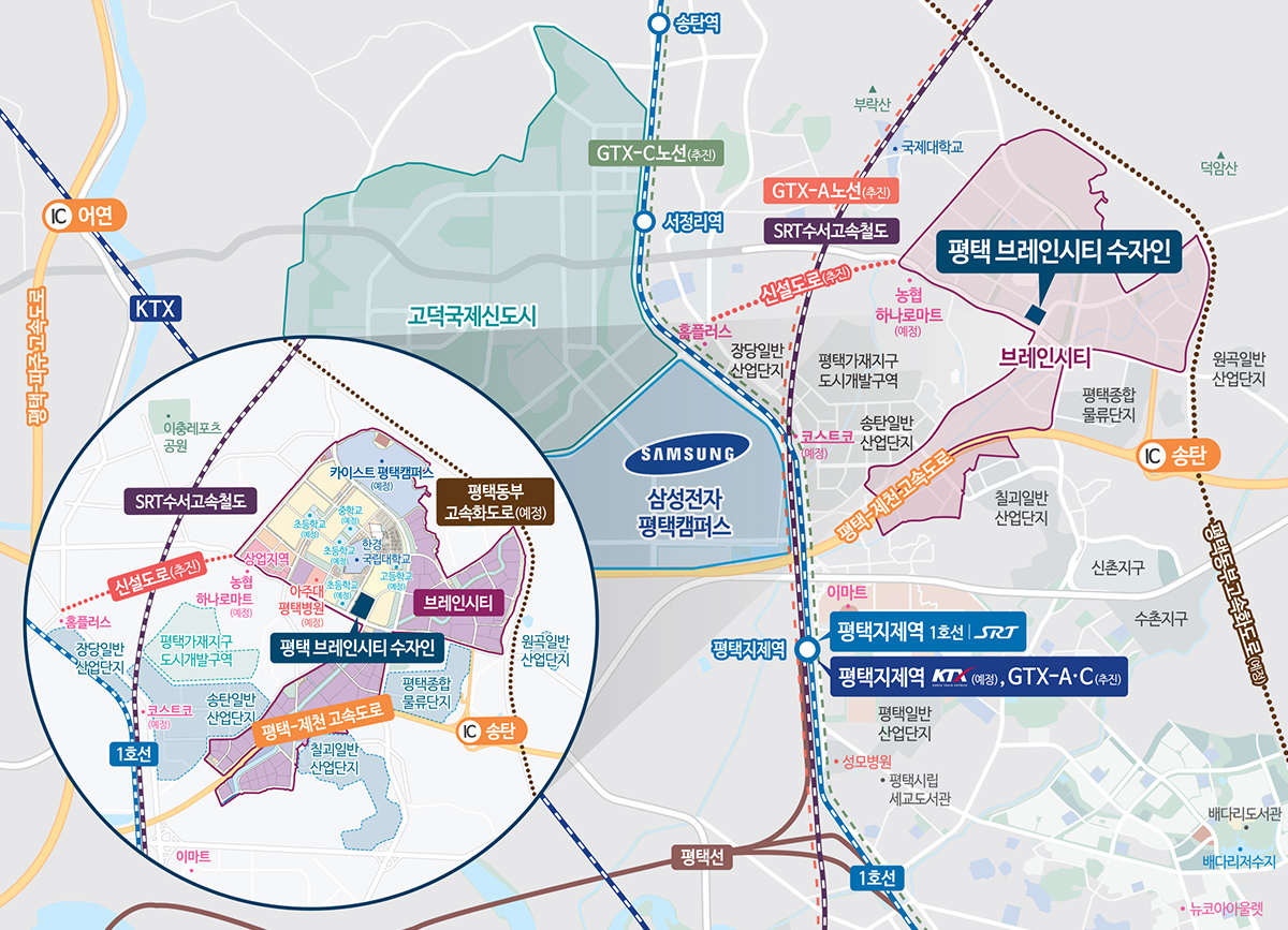 ※ 평택지제역 KTX 관련 내용은 국토교통부 고시 제2023-598호를 근거로 한 내용이며, 추후 관계기관 및 지자체의 계획변경에 따라 용도 변경, 위치 이동, 연기, 변경, 취소될 수 있습니다.